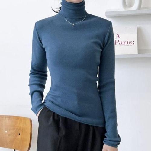 겨울 니트 이너 겨울용 블루 폴라티 스웨터 폴라 목티 따뜻한 WFKZJWC