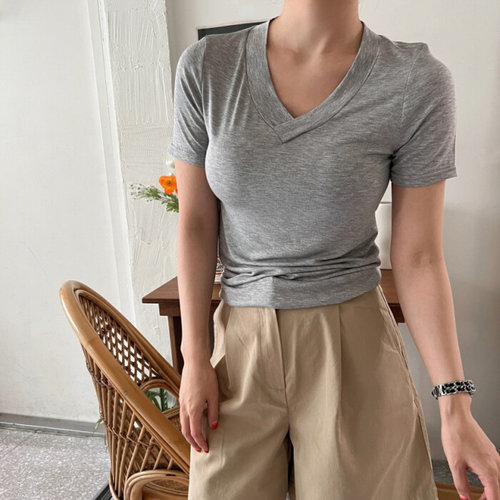 설세라 / 1+1 여성 브이넥티셔츠 레이온 스판 반팔티