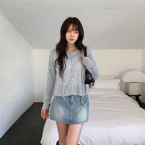 [신상오픈런]여성 린넨 클래식 스판 크롭 단추 노카라 가디건