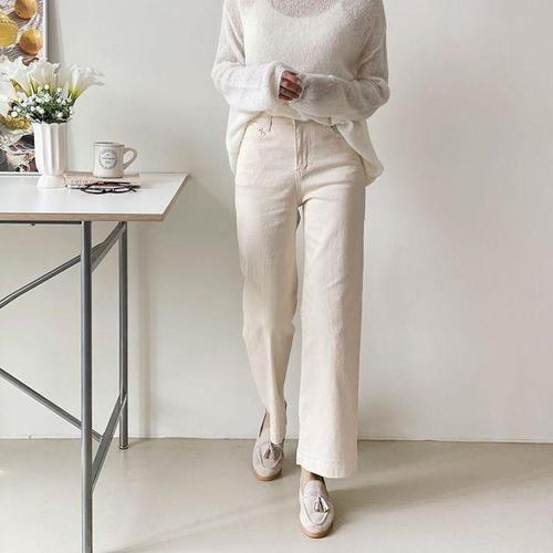 [다잇템]여자 일상룩 H라인 세미와이드 가을팬츠 면바지