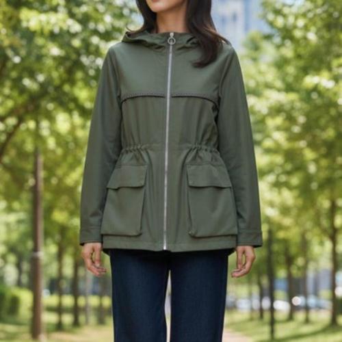 [다잇템]여자 면혼방 사파리 벨티드 바람막이 후디 점퍼