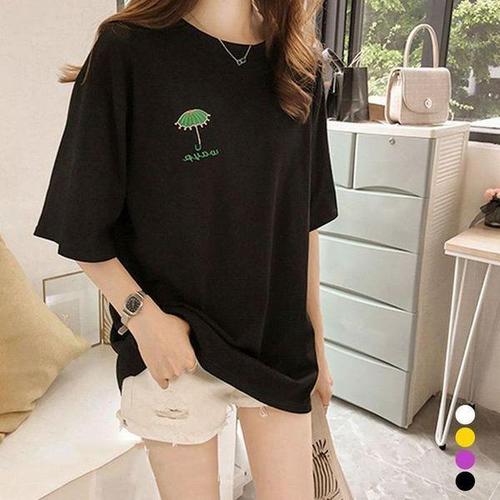[셀러허브_여성트랜드패션]ONM 여성 티셔츠 우산 자수 반팔 롱티셔츠