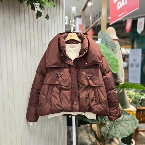 [에이치플러스몰]여성 크롭 기장 하이넥 짧은 숏패딩 겨울 아우터