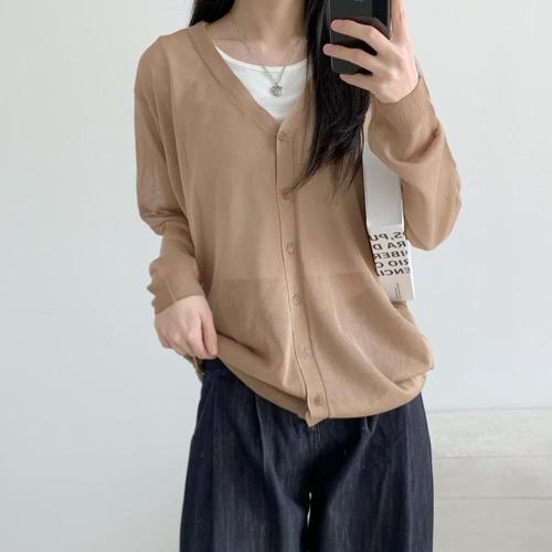 [브이와이]여자 다크 라이트니트 여름외투 V넥 가디건