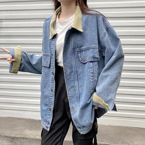 귀여운 코디 오버핏 자켓 여자 선물 청자켓 점퍼 청 WFKXXWB