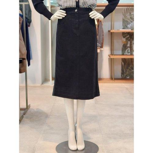 POMTOR 여성 스판 데님 스커트 뒷트임 데일리 청치마