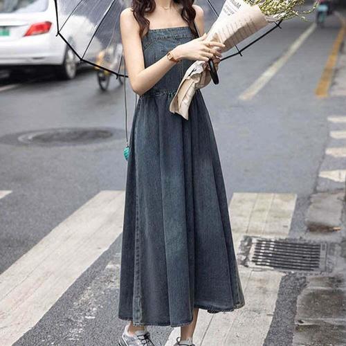 [셀러허브_여성트랜드패션]ONM 여성용 기본 멜빵 데님 원피스 캐쥬얼 청 롱 데