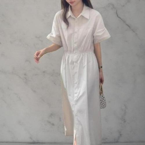 [에이치플러스몰]린넨 심플 버튼업 반팔 셔츠 드레스