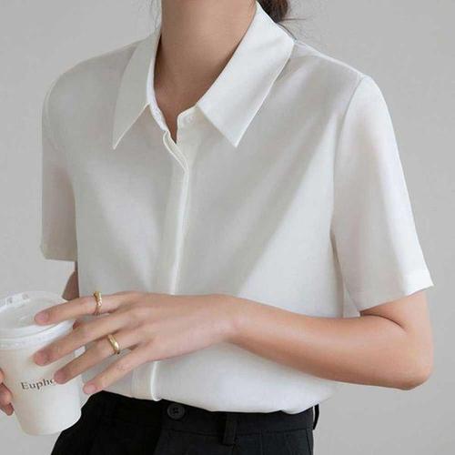[에이치플러스몰]데일리 기본 반팔 카라넥 셔츠 오피스 코디 블라우스