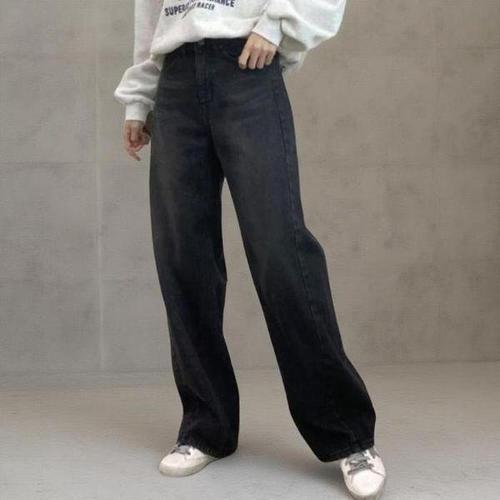 [다잇템_패션]여자 H라인 검정데님 무파진 핏 청바지