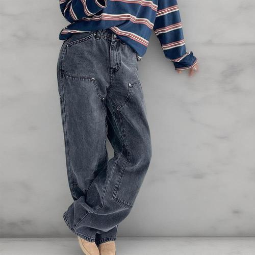 [다잇템]여성 코디 데님팬츠 검정 리벳 와이드팬츠