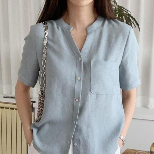 KAA 3305-1 린넨여자차이나헨리넥반팔티셔츠