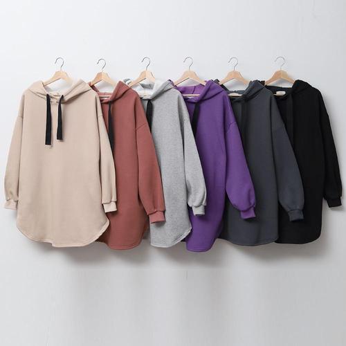 [옷자락] 여성 큰사이즈 기모 후드 티셔츠 겨울용 힙커버 홈웨어