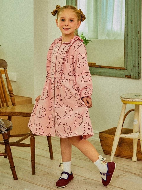 [미니도우] 미니도우 토끼 핑크 러플 유아 아동 여아 원피스 롱슬리브