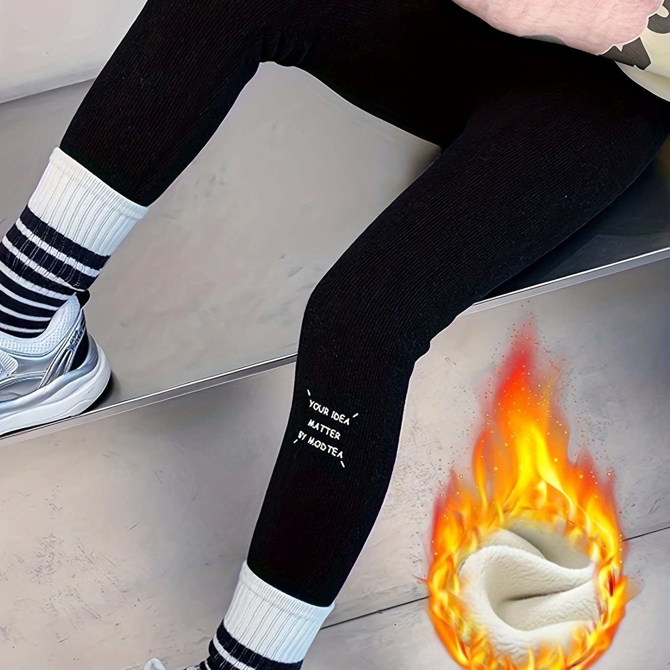 TEMU 여아용 새로운 스타일리시하고 포근한 기모 안감 레깅스, 2024년 가을/겨울에 완벽, 두꺼운