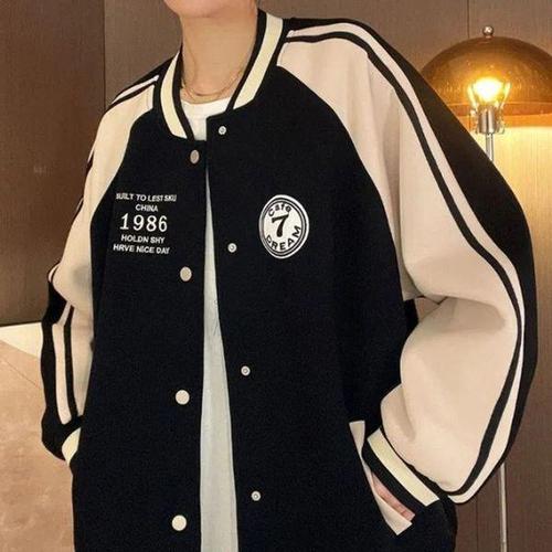 COSYEVNO 봄가을 여성 야구 유니폼 패션 루즈핏 빅사이즈 접합 날염 라운드넥 재킷