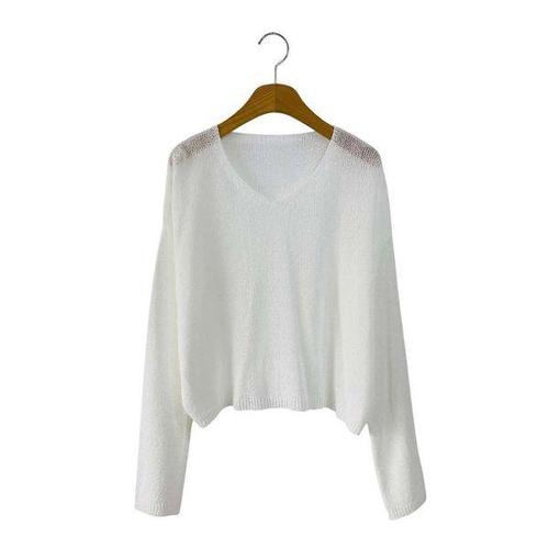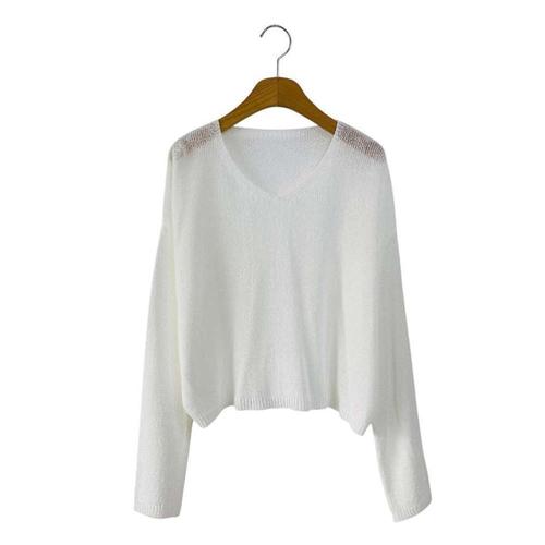 [샵앤][샵앤] 국산 여성 V넥 쿨링 부클 긴팔 심플 니트 티셔츠 JLE-WKN-4426-아이보리