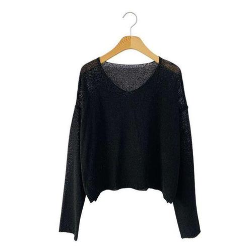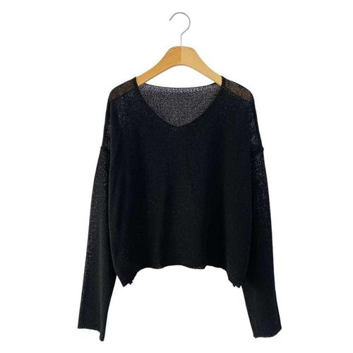 [샵앤][샵앤] 국산 여성 V넥 쿨링 부클 긴팔 심플 니트 티셔츠 JLE-WKN-4426-블랙