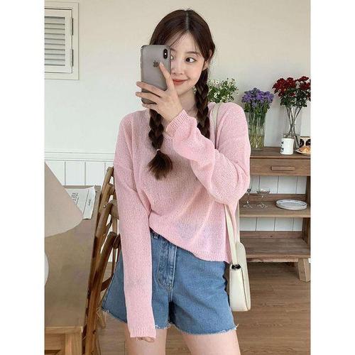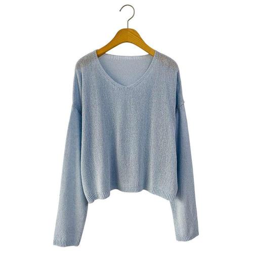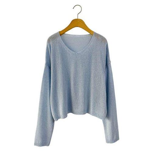 [샵앤][샵앤] 국산 여성 V넥 쿨링 부클 긴팔 심플 니트 티셔츠 JLE-WKN-4426-소라