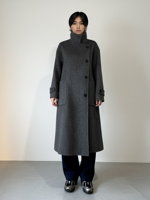 [메타퍼] 메타퍼 울 블렌디드 핸드메이드 하이 코트 챠콜