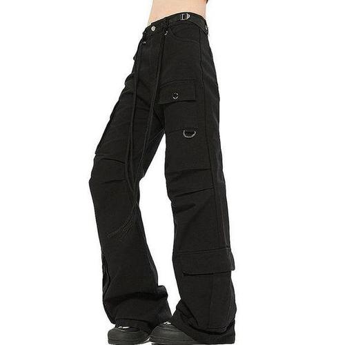 바이일이오 여성 일자핏, 조거 스타일 와이드 카고 밴딩 트레이닝 팬츠 S~XL