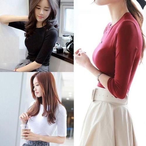 [신상오픈런]여성 입술넥 5부 반팔 니트 티셔츠 가을용