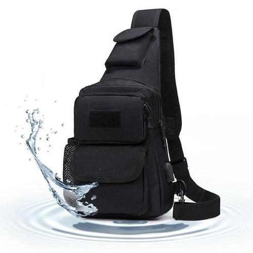 남성용 소형 블랙 슬링 크로스바디 백팩 숄더백, 가벼운 원 스트랩 슬링백 등산용 자전거 여행용 USB 충전기 포트-나일론