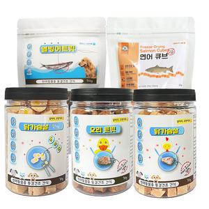 강아지 국내산 수제간식 24개 동결건조 닭가슴살 연어 큐브 애견 열빙어 트릿 고구마 말이 오리목뼈 소간
