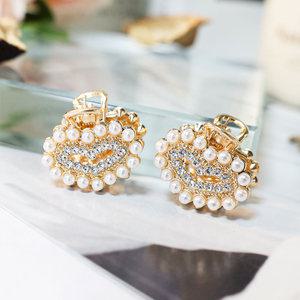 2개 세트 진주 하트 미니 집게핀 앞머리 옆머리 반묶음 헤어집게 메탈 큐빅 머리핀