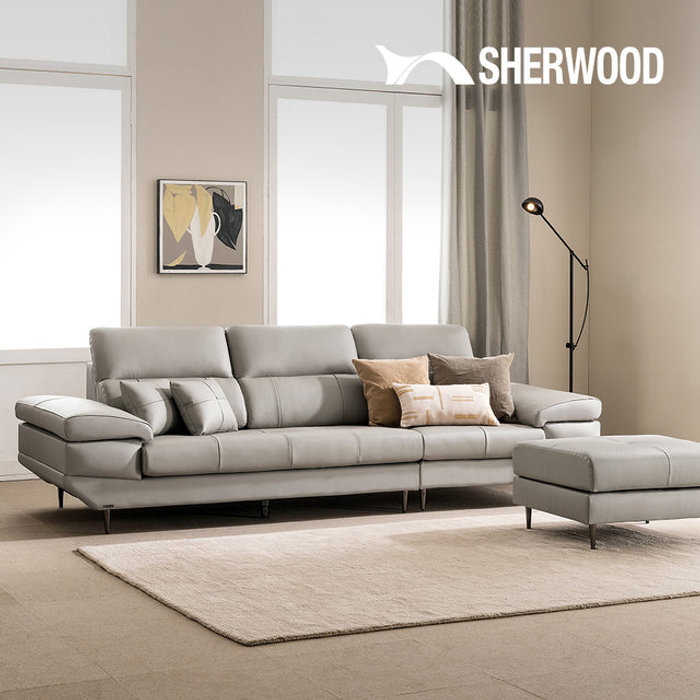 쉐우드가구 오르테 이태리 천연소가죽 소파 3인용 + 스툴