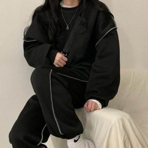 [에이치플러스몰]여자 캐주얼 봉재라인 스포티 오버핏 트레이닝 세트