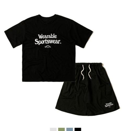 [에이치플러스몰]남성 캐주얼 반팔 트레이닝세트 오버핏티 밴딩반바지