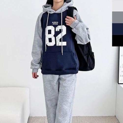 [에이치플러스몰]여자 오버핏 숫자 기모 트레이닝 세트 1P 바지 티셔츠