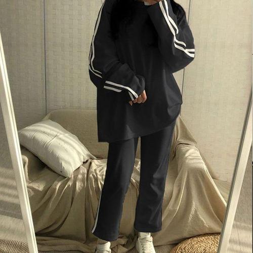 [에이치플러스몰]여성 루즈핏 두줄라인 긴팔 트레이닝세트 캐주얼룩