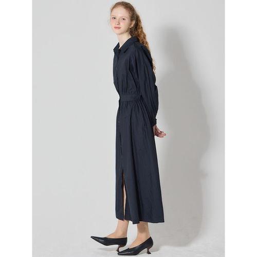 일이오 여성 베이직 셔츠형 허리끈 롱 원피스