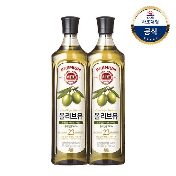 사조대림 해표 압착 프리미엄 올리브유 900ml x 2개