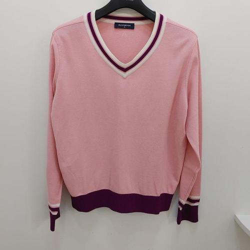 [올포유]가을 여성 배색 브이넥 니트 티셔츠(핑크,청록)AWSRN7361
