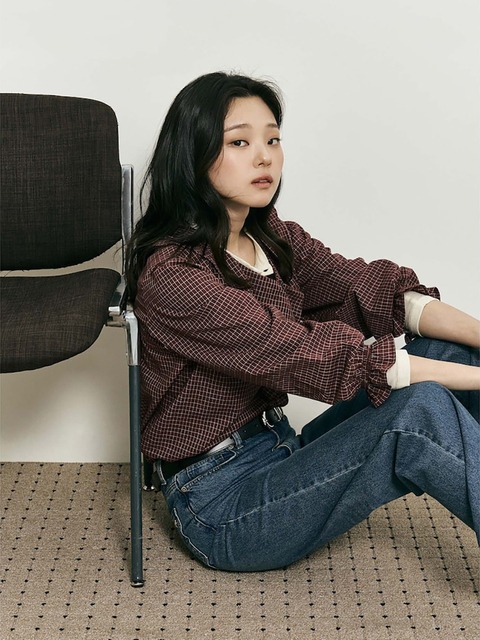 [빈폴레이디스] [B. my] 체크 러플넥 블라우스와인 (BF5864N13Z)