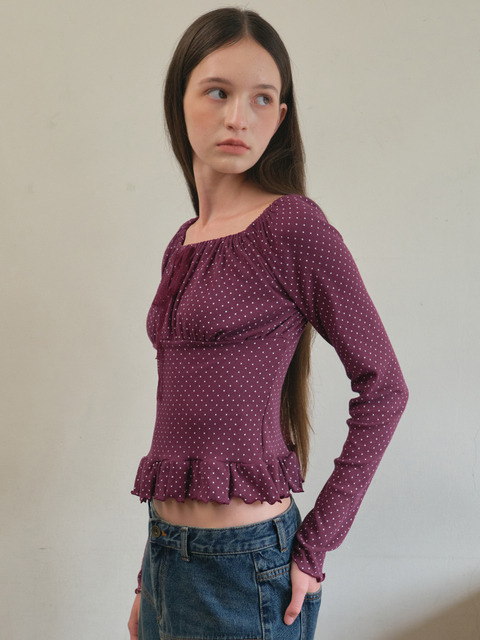 [아우어노스텔지아] 도트 퍼프 슬리브 블라우스 티셔츠_Wine(O25-TP18)