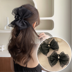 [콩심팥심]블랙 헤어집게핀 왕리본집게핀 쉬폰 왕리본