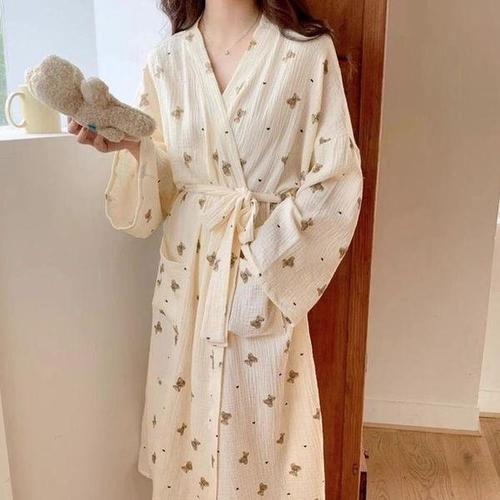 [이삐다]벨라도나 여성 간절기 홈웨어 목욕가운 파자마 긴팔 요루면 패턴 잠옷