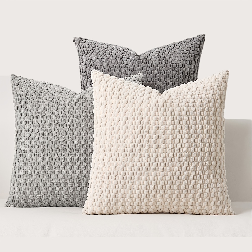 TEMU 3개 세트 부크레 소프트 벨벳 모던 양면 디자인 소파 베개 커버 - 내구성 있고 세탁기 사용 가능, 지퍼 클로저, 사무실 및 침대 장식용 스타일, 베이지, 그레이, 화이트, 장식용 베개