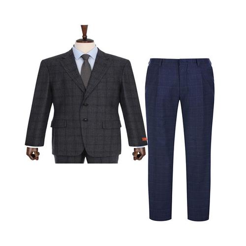 [바쏘옴므]장 울100% 레귤러핏 체크패턴 클레식 수트 슬림핏 차콜 Z3JW21-2