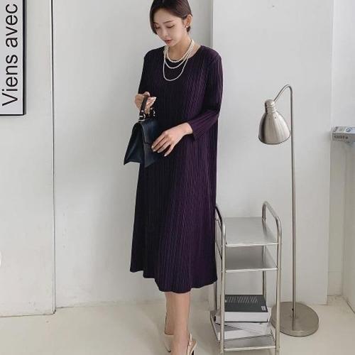 [신상오픈런]|KSO1D76|딘너게 레이어드 맨투맨 여성 주름원단 긴원피스_18170571_597559