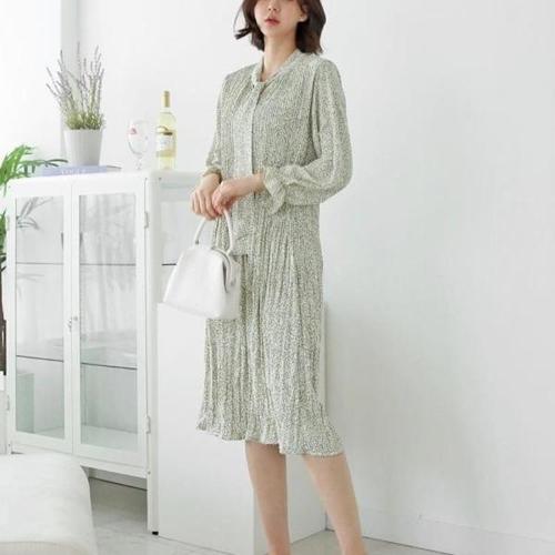 [신상오픈런]|KSO4180|일덴라 주름원단 여성 가을하객룩 진초록 긴원피스_18170226_597559