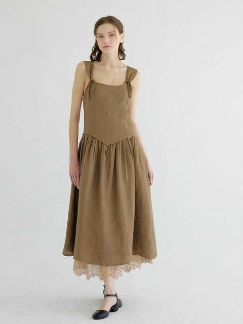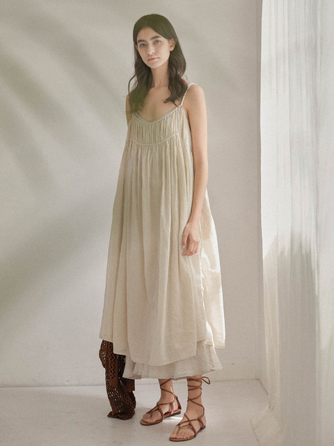 [호메로페로] 릴리 셔링 린넨 롱 드레스