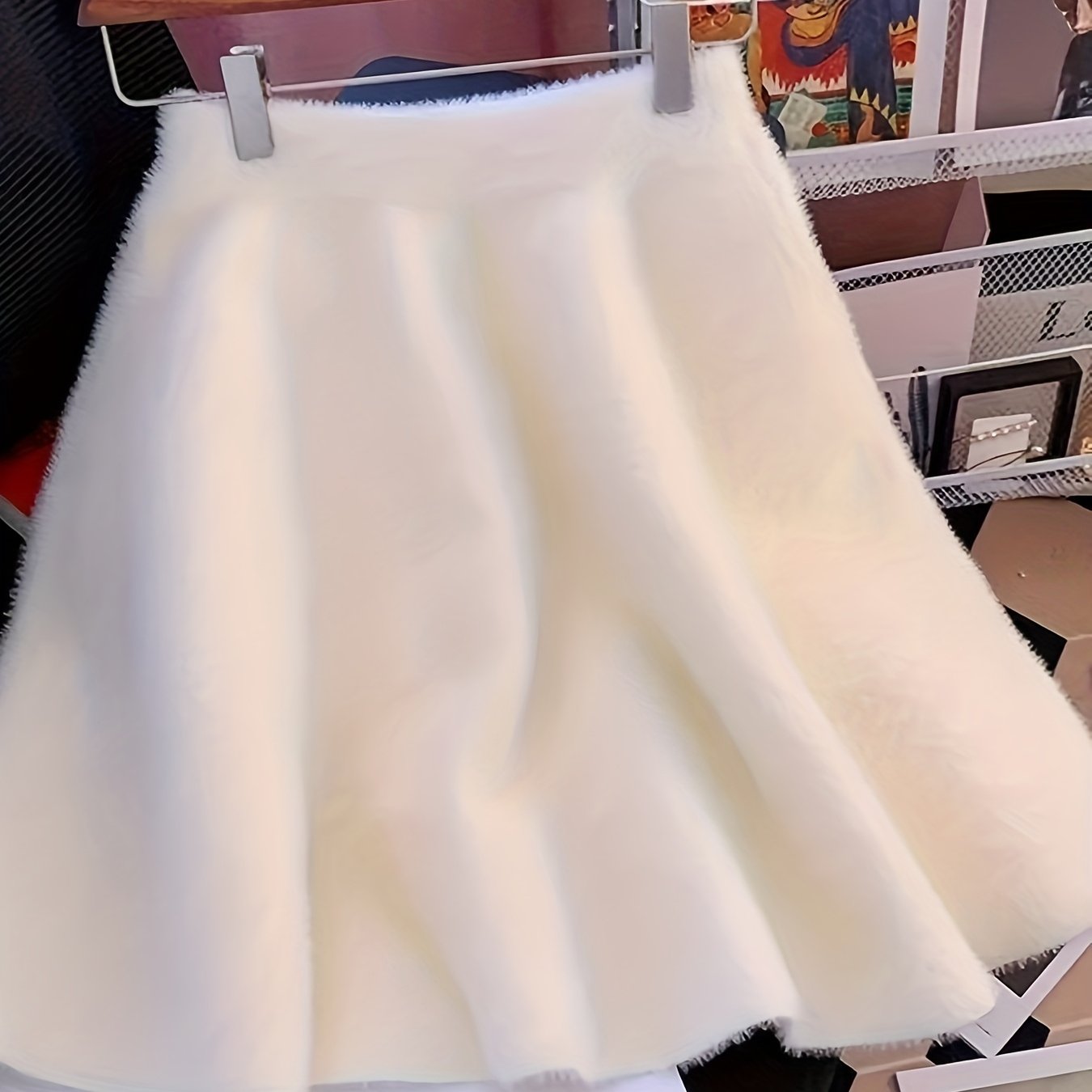 TEMU 여성용 우아한 인조 모피 질감 스커트 - 겨울 따뜻함, 플레어 밑단, 단색, 시크한 오피스부터 파티까지 가을/겨울, 일상 및 공식 행사, 여성용 겨울 스커트, 여성용 스커트, 겨울 스커트