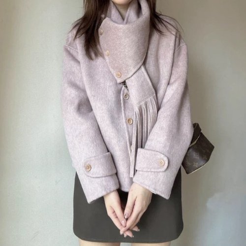 [블랙퀸]마감할인 랑뷰 유니크 스카프 숏 코트 blk002657