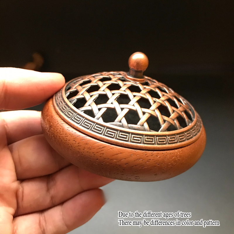 TEMU 우아한 월넛 향로 - 3.35" 컴팩트 레트로 디자인, 정교한 조각, 고급 커피 테이블 장식, 전기 불필요, 가정 및 사무실 향기 완벽, 향로