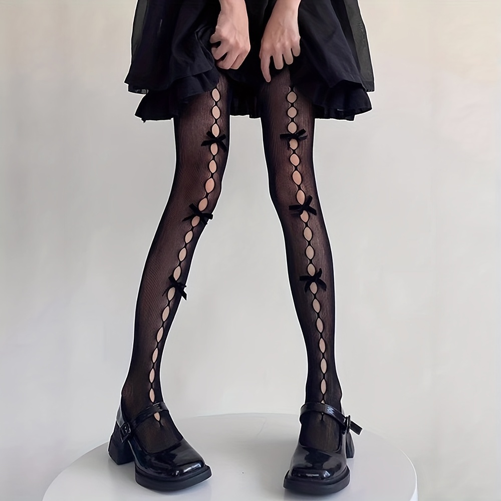 TEMU 1쌍 여성용 시스루 보우 메쉬 팬티스타킹 - 하이웨이스트 시스루 타이츠 & 보우노트 피쉬넷 스타킹, 20/D 스케일 (XXL 사이즈), 손세탁 가능 시스루 오프 레그웨어, 란제리, 댄스용 - 우아하고 섹시한 홀아웃 타이츠